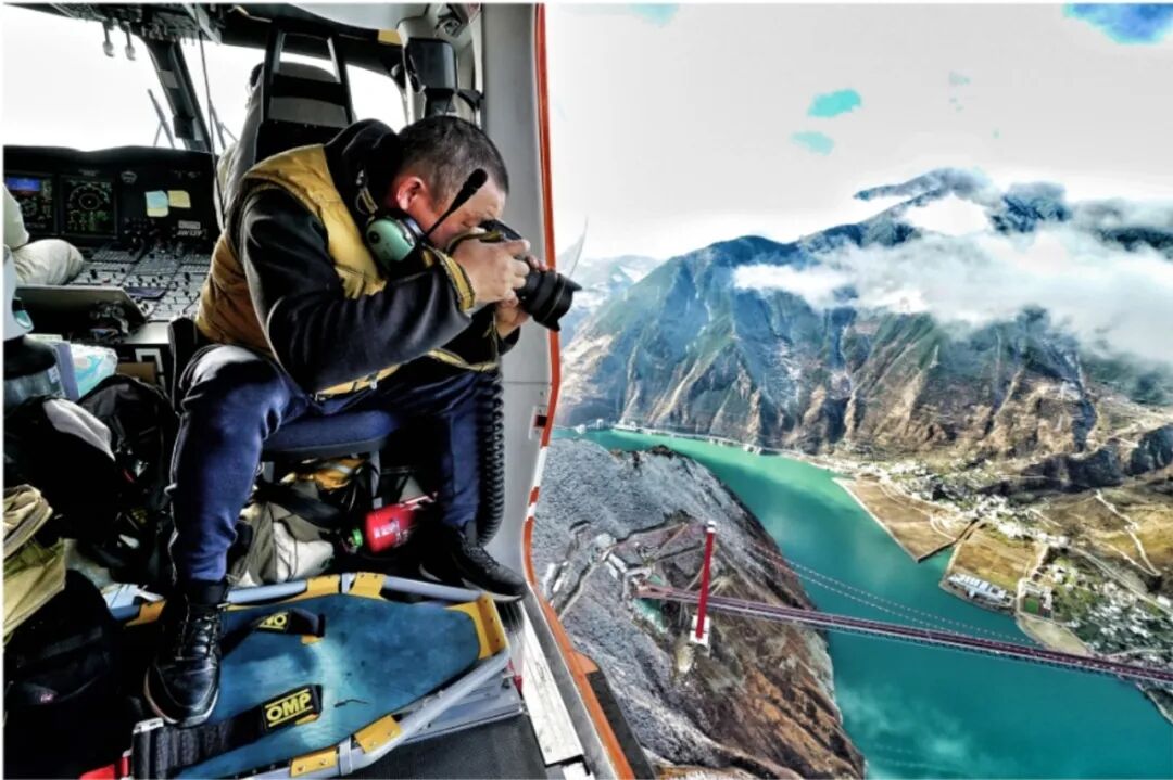 记者爬“天梯”前往悬崖村采访 图据川观新闻