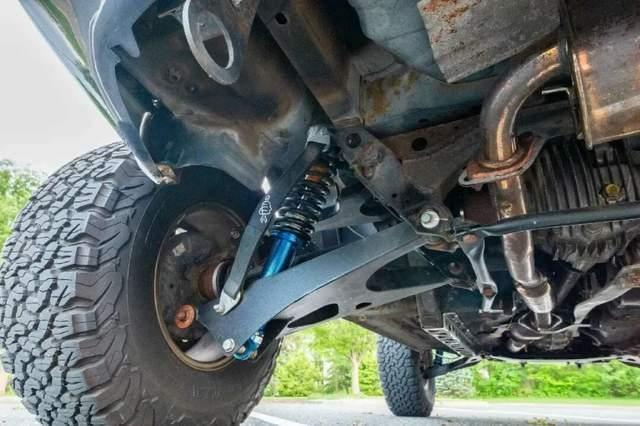 通过Paco Motorsports Offroadster升高套件,加上31英寸BF Goodrich全地形轮胎搭配15寸铝合金轮毂,底盘离地间隙直接翻倍,而AFCO Racing的定制避震,提供超大的行程,以应对复杂的路况。